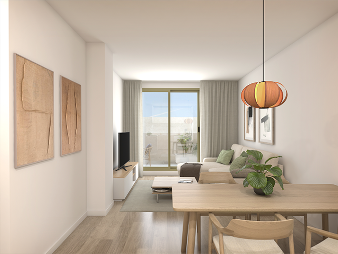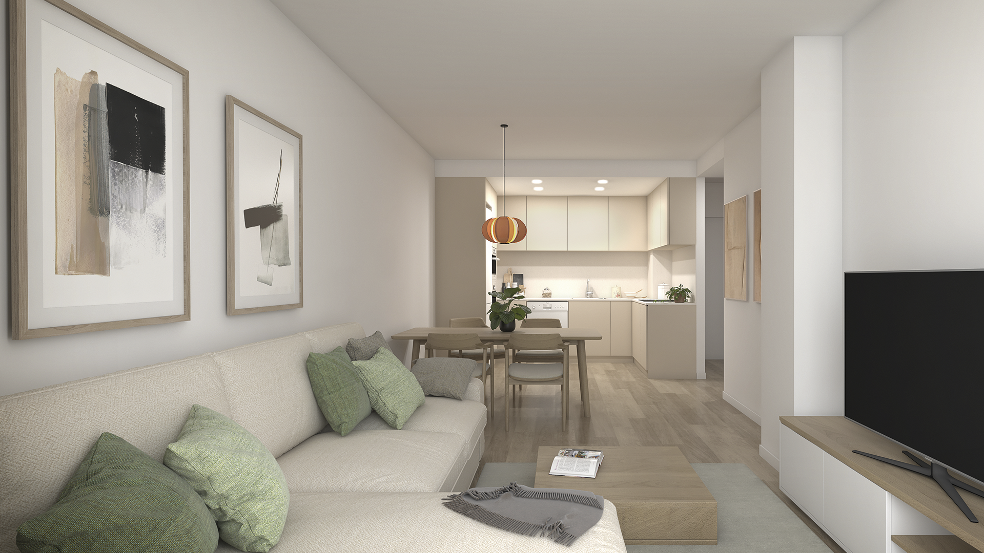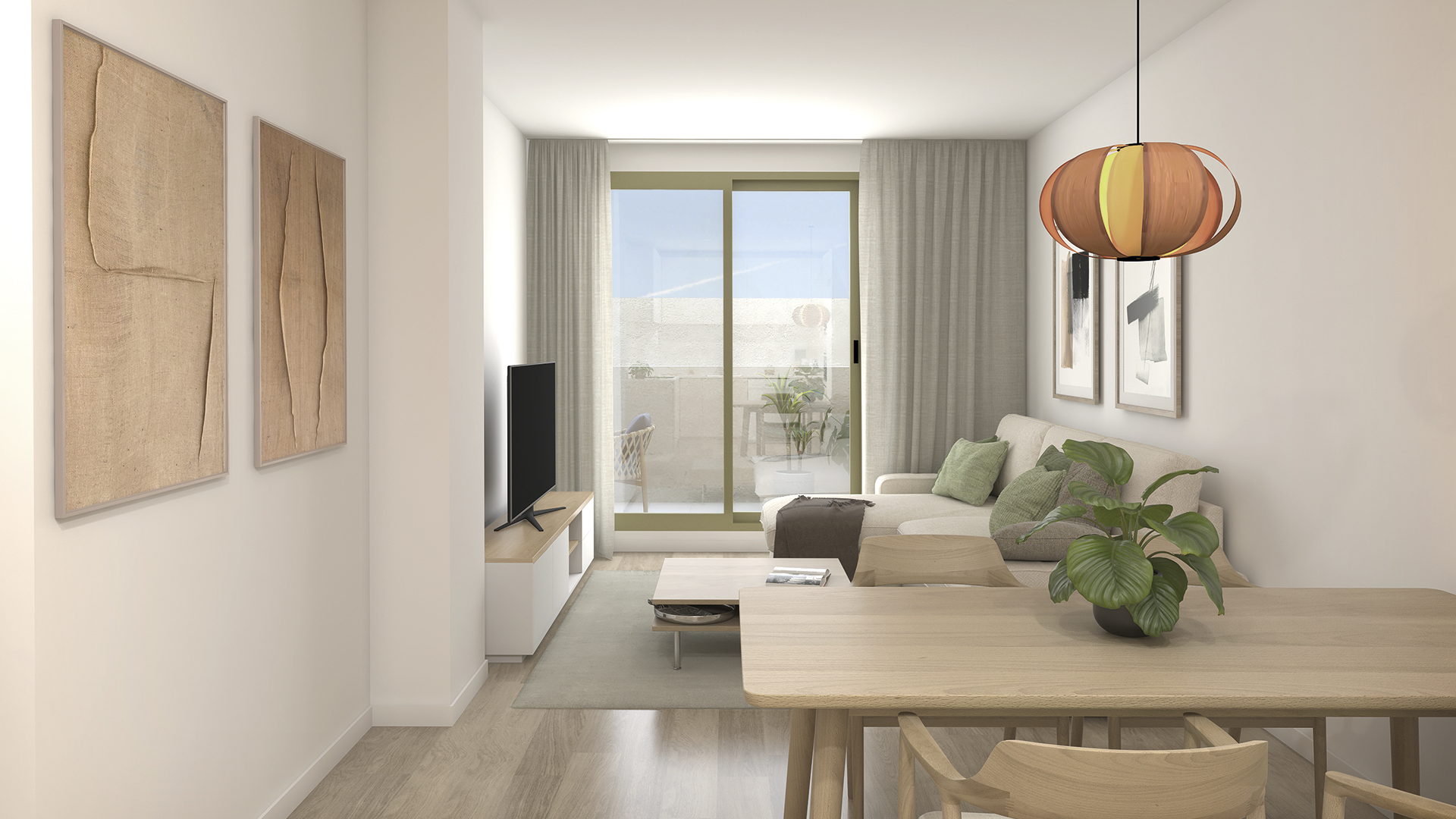 Disponibles viviendas de 1, 2 y 3 dormitorios, incluyendo dúplex con grandes terrazas. Todo ello con una cuidada zona comunitaria que incluye piscina, ideal para relajarte sin salir de casa.